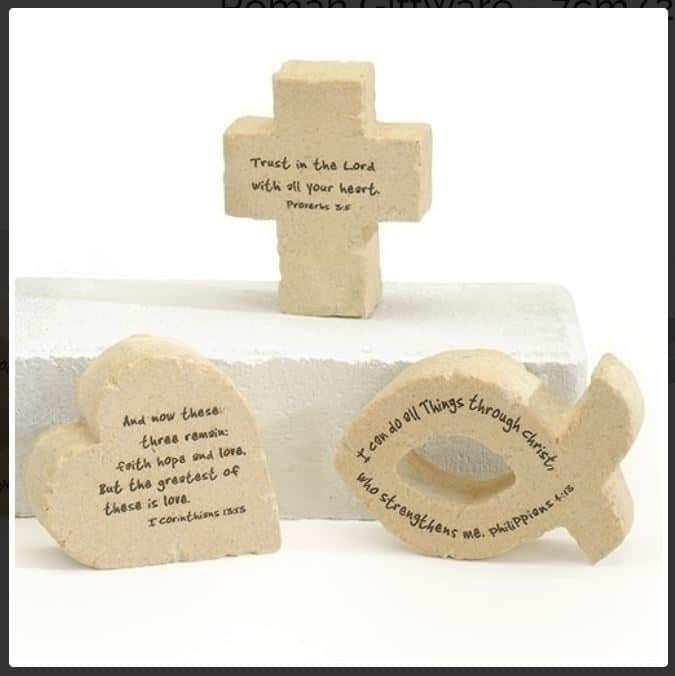 Roman Giftware – 7cm/2.75″ Symbol Verse Plaques (fish/heart/cross, 3at)